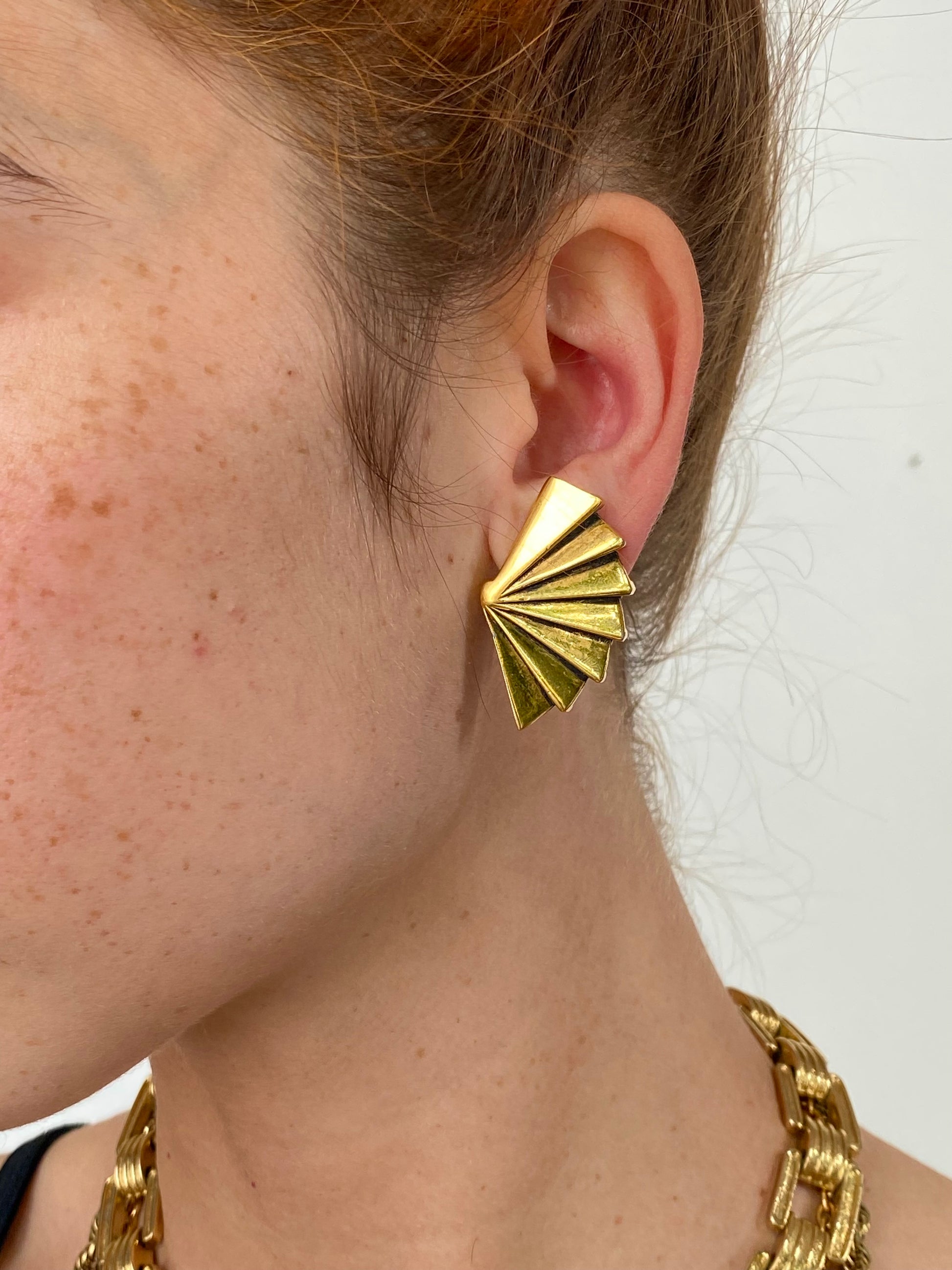 Clips plaqués or provenant d'un deadstock donc tout neufs. De la patine (pâte noire utilisée en bijouterie) a été mise à certains endroits pour faire ressortir les reliefs. So chic!