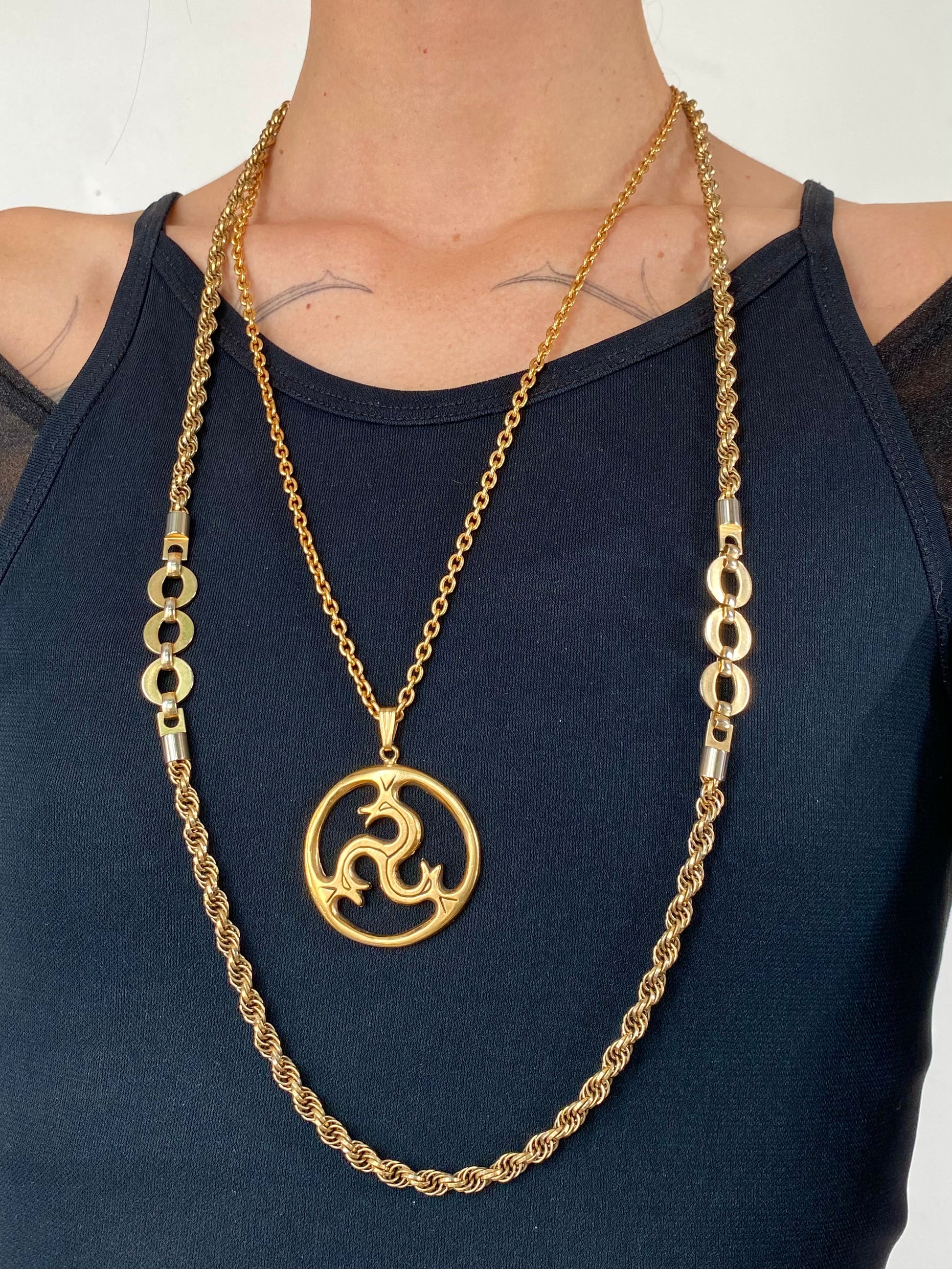 Sublime pendentif et sa chaîne en bronze doré, à motif de Triskèle.